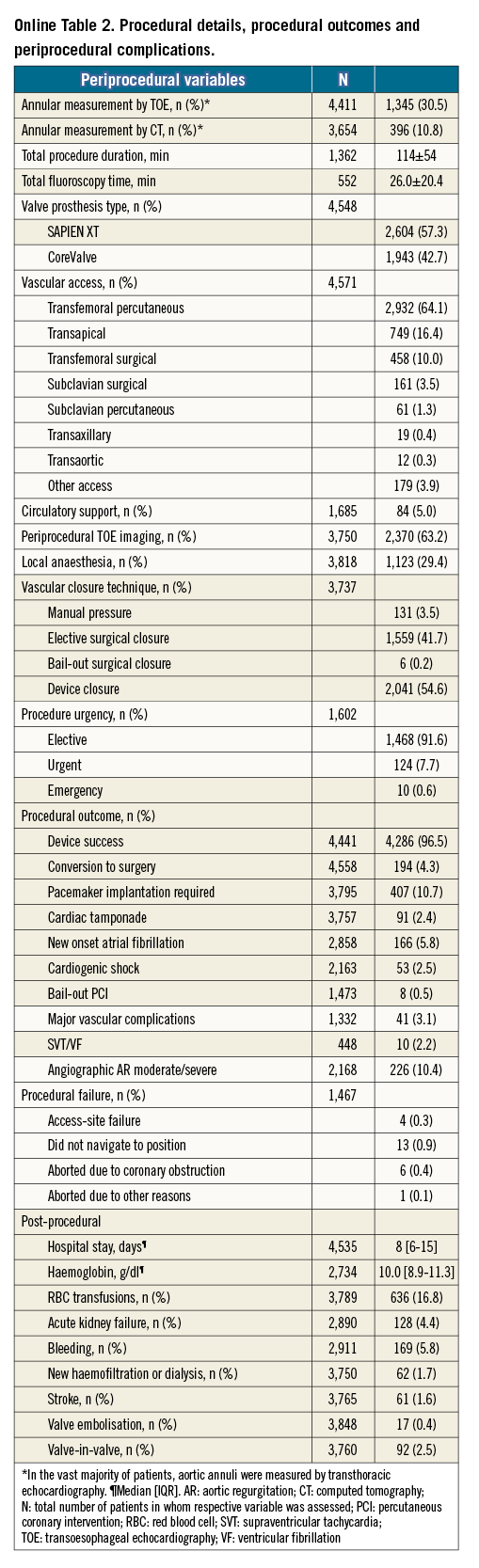 The pilot Sentinel Registry of Transcatheter Aortic Valve Implantation of the EURObservational Research Programme (EORP) represents a collaborative effort of 137 centres in 10 European countries. Over a 16-month period, 4,571 patients were recruited. In-hospital outcomes of this cohort have recently been published5. Whilst a number of national and industry-sponsored, valve-specific registries have been reported, the EORP pilot Sentinel Registry is unique in its unbiased reflection of national and international variation in patient selection, procedural approach, and choice of valve prosthesis.